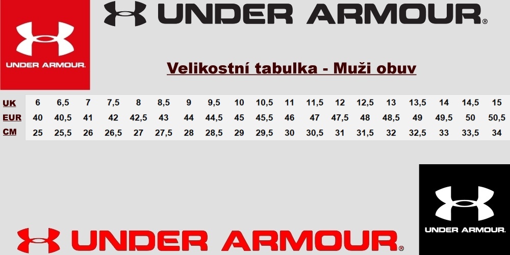 Velikostní tabulka UNDER ARMOUR